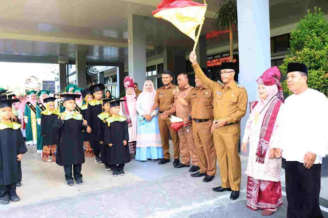 Payakumbuh |JangkarPost.com— P.j Wali Kota Rida Ananda memberikan motivasi sekaligus melepas Pawai Khatam Alquran, Wisuda Tahfiz dan Wisuda Iqra’ SDN 17 Payakumbuh di Halaman Kantor Balai Kota Payakumbuh, Senin (16/01/23).