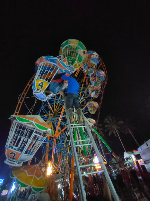 Payakumbuh,JangkarPost.com--- Pemadam Kebakaran bersama Tim Reaksi Cepat (TRC) Kota Payakumbuh langsung tancap gas bergerak cepat untuk mengevakuasi pengunjung Pasar Malam yang terjebak di atas Wahana Biang Lala yang miring karena patah, di Kelurahan Talang, Kecamatan Payakumbuh Barat, Selasa (9/5) sekitar pukul 21.35 WIB.